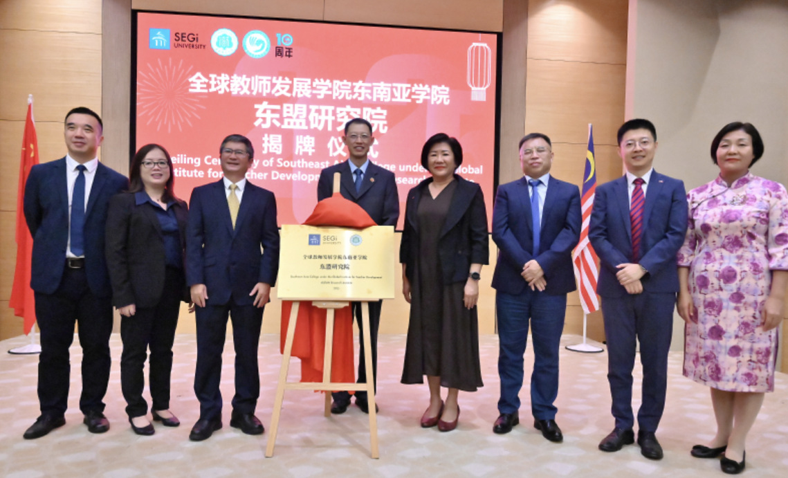 9月24日,海南师范大学全球教师发展学院东南亚学院东盟研究院签约揭牌仪式在马来西亚世纪大学举行。马来西亚世纪大学校长郑玉美院士、我校副校长杨兹举出席仪式并致辞。