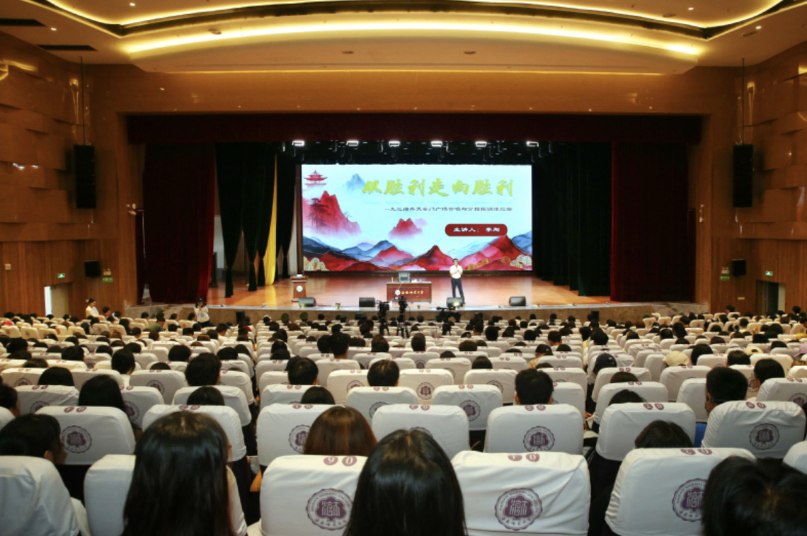 作为九三阅兵合唱的总指挥,李刚生动讲述了天安门广场阅兵合唱的庄严场景,揭秘了无伴奏合唱背后的艺术密码,分享3000人合唱训练的幕后故事,并邀请我校曾参与九三阅兵的学生郑思瑜登台。他将视角延伸至历史深处,以中国人民14年抗战光辉历程为主线,系统梳理了从东北抗联浴血奋战到全民族抗战众志成城,从平型关大捷振奋人心到抗日战争最终胜利举国欢腾的壮阔史诗,深刻解读“天下兴亡、匹夫有责的爱国情怀,视死如归、宁死不屈的民族气节,不畏强暴、血战到底的英雄气概,百折不挠、坚忍不拔的必胜信念”这一伟大抗战精神的丰富内涵。