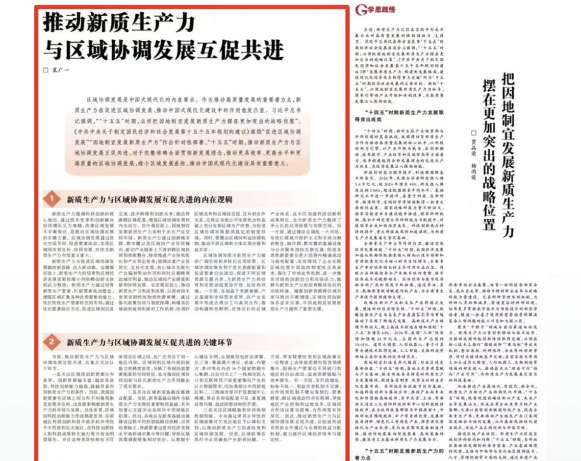 成果推介2025年11月24日,《光明日报》刊发我校裴广一教授理论文章《推动新质生产力与区域协调发展互促共进》,文章聚焦新质生产力与区域协调发展两大焦点命题,为“十五五”时期推动更具效率、更高水平和更高质量的区域协调发展,缩小区域发展差距,推动中国式现代化建设提供重要学理支撑和实践指引。文章引发《学习强国》国家平台等20多个主流平台全文转载,取得显著经济社会效益,是海南师范大学阐释中共二十届四中全会精神、助力落实“十五五”规划的最新重要理论成果。